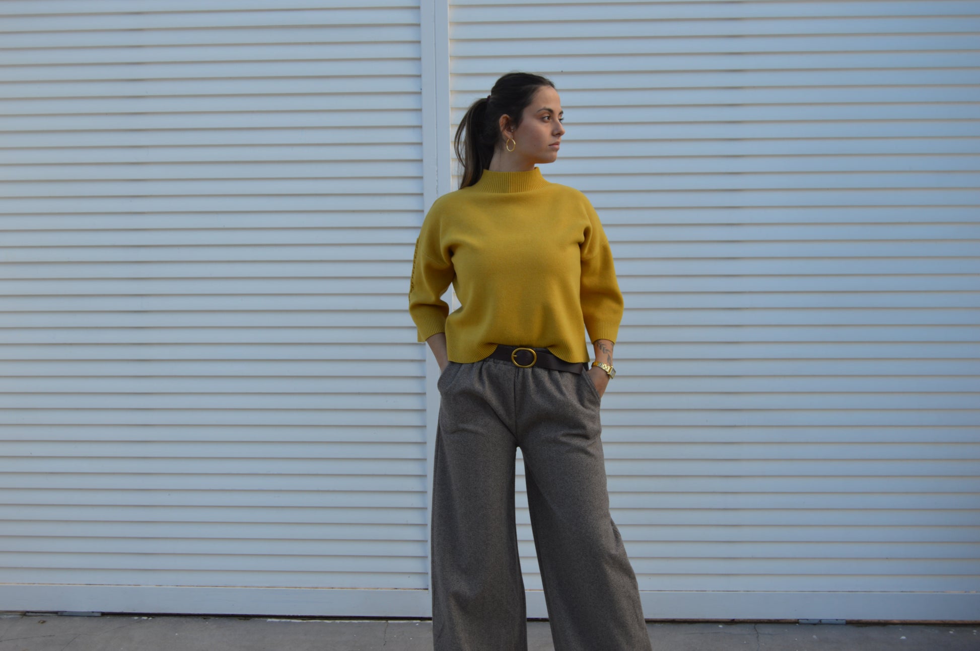-Cuello chimenea suave y estructurado.